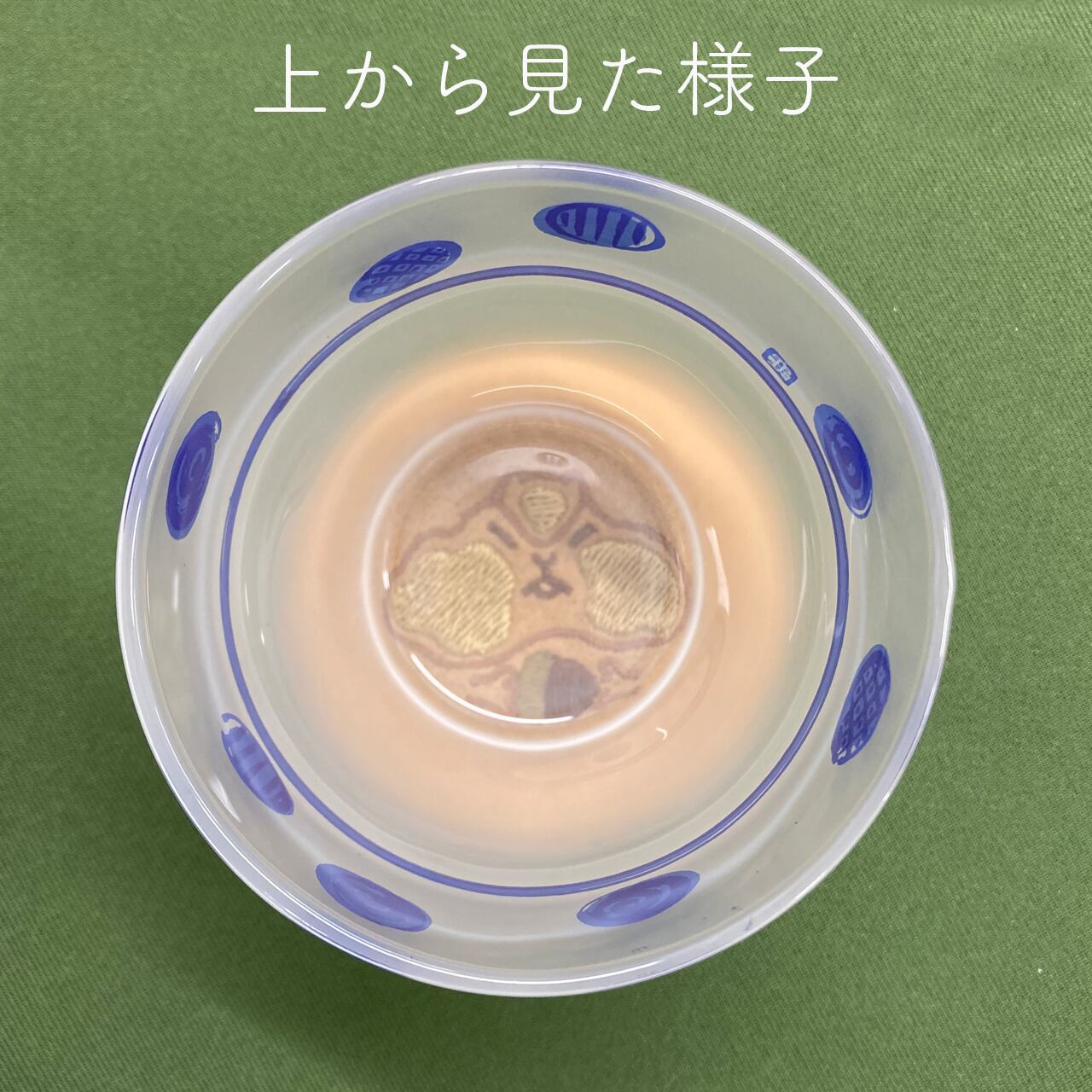 透明のグラスやコップは真上から、それ以外であれば持ち上げた時につぶれている顔が出てきます。