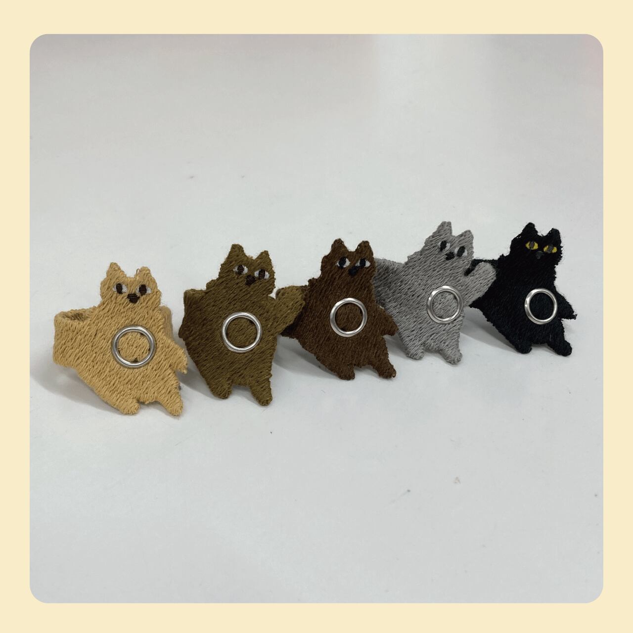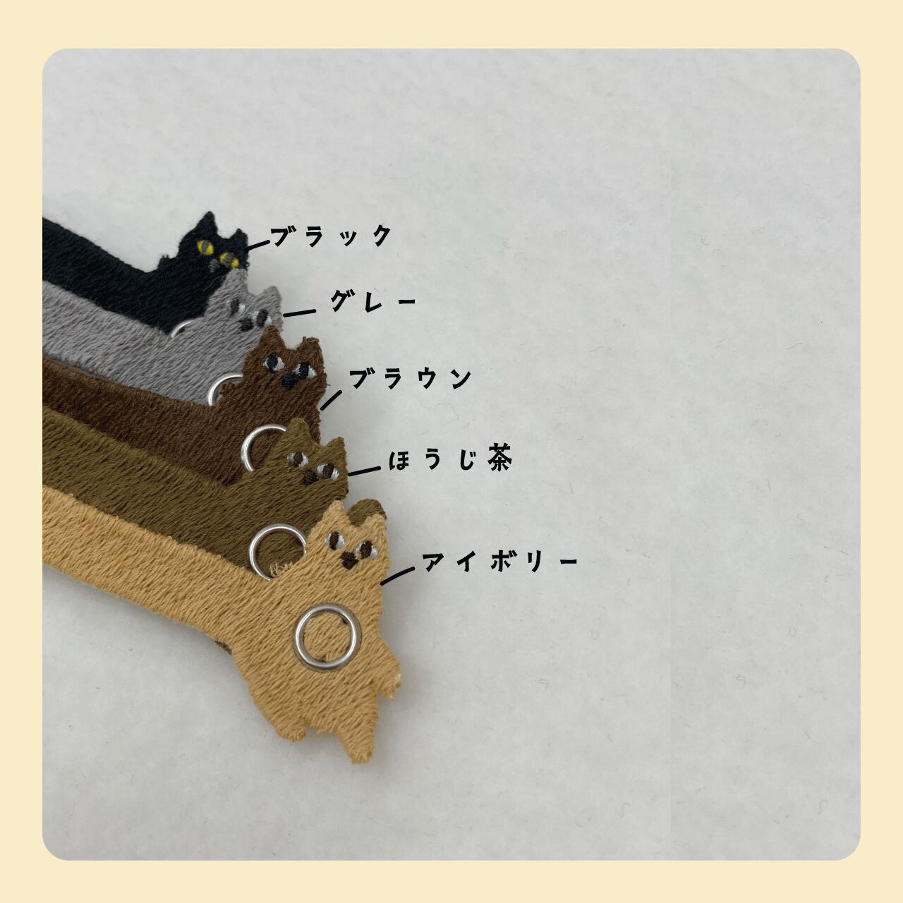 ノーマル(手を挙げていないねこ)が3本、Hand up(手を挙げたねこ)が2本の5本を販売します。色とパターンはランダムです。
