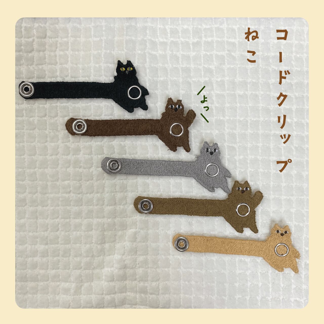 【コードクリップ】しっぽ長めのぽっちゃりねこ(5本セット)